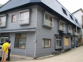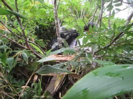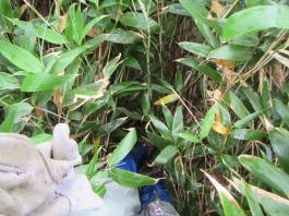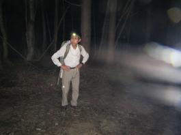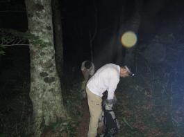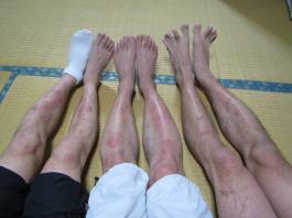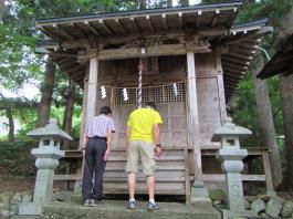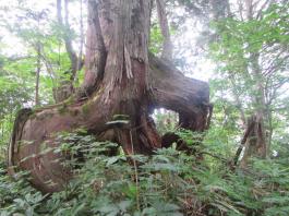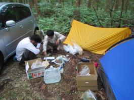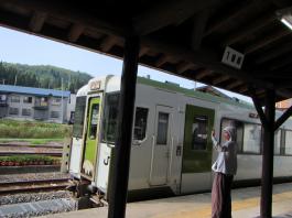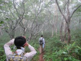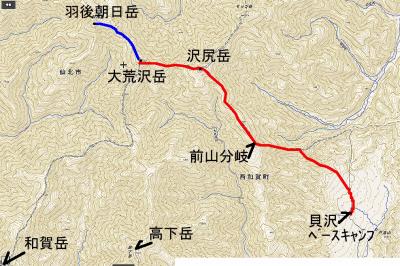 | 話しは今から1年前に遡る。 休日でも登る人の少ない武蔵五日市は「金比羅尾根」の外れ、標高も631.9mしかない「白岩山」のピークで、それも平日の水曜日にばったり会ったのが山田さんだった。 山田さんと一緒に登った山は、このときを含め3回だが、メジャーな山には見向きもしないバリエーション好きという共通点ですっかり意気投合し、以後、大の山友達になった。 今回のエクスペディションは、その山田さんから電話に始まった。 「5月の連休に西会津の毛猛山に行ったけど、時間切れで途中敗退したよ。 来年、一緒に行かない。ところでマイナー12名山って知ってる。 その一つで東北に「羽後朝日岳」っていう山があって、梅雨明けに行こうと思って・・・」 聞けば知る人も少ないヤブ山。しかも誰でも登れる山ではないと言うところに引かれ、二つ返事で計画に乗った。 山田さんの計画はこうだ。 まず1日目は車で登山口のある林道終点まで行きテント泊。 2日目、早発ちして稜線を辿り、「大荒沢岳」まで行き、そこからヤブこぎ。 羽後朝日岳のピークを極めピストンで戻る。 その日にうちに近くの湯治場:鶯宿温泉の宿に泊まる。 3日目に東京に戻る。 今回、3人目のメンバー立川さんは、山田さんの同僚だ。 山は最近、本格的に登り始め、山田さんもまだ一緒に歩いたことがないと言う。 そこでチーム作りに6月8日、日帰り山行を計画し、このエクスペディションに3人で行くことに問題ないことを確認してきた。 一つ問題は日程だった。 3日間休みが必要なので3人の都合と、天候をみながら決めなければならなかった。 そこで、梅雨明け、7月下旬から8月上旬の週末前後を予定日とした。 今年は台風が早くに発生し、梅雨がいつ明けるかなかなか読めなかった。 そして梅雨が明けると、今度は急激な猛暑。連日35度を超える真夏日が続いた。 東京から500kmも離れている東北の天気は、週間予報を見てもころころ変わり、最後は曇りのち晴れ、夜中に一時雨の予想に賭け、前日、山田さんの自宅に前乗りした。 キャラバン出発の朝5時、立川さんの車に乗り込み、久喜から東北道に入った。 途中、山田さんの奥さんが作ってくれたオニギリで朝食。 車は3人で交代しようと決めていたので、順番に運転を代わる。 山田さんのまじめな山の話、雑学にうなずき、破天荒な話に大笑いしながら、長いキャラバンは続いた。 ![]() 途中、窓から見える山は、東北の山を登り尽くした山田さんの解説付きだ。 車は渋滞にも巻き込まれず、順調に走ってくれた。 ![]() 岩手県に入り「北上JC」から秋田自動車道に移る。 すると「錦秋湖」周辺の土砂崩れがあって、国道が通行止めとの情報が入り心配したが、降りるICの前で問題なかった。 「湯田IC」で高速を降り、山田さんお奨めのJR大船渡線、「ほっとゆだ駅」に向かった。 ![]() まずは駅前のそば屋で腹ごしらえし、駅に併設されている温泉で汗を流した。 駅に温泉があるところは日本に18箇所あるそうだが、駅舎内となると9箇所だけだそうだ。 広い浴槽で、湯温は高かった。壁には、線路にあるのと同じ信号機が付いていて、日に10本程度の列車が近付くと、黄色から赤に変わる、とてものどかな仕組みだ。 ![]() 「ほっとゆだ駅」を出ると次は買出し。3食分の食事と酒の肴を地元調達する。 事前にネットで調べた「湯元温泉」にある、スーパー「オセン」に向かう。 そこそこ大きなスーパーで、特に野菜と魚が安かった。 酒の肴には、アジとカツオの刺身を買い、氷を分けてもらい車に積み込んだ。 いよいよベースキャンプの「貝沢」の部落に向かう。 16時を過ぎてもまだ暑い。途中、車にも食糧(ガソリン)を入れ、小さな商店で道を確かめ、林道に入る。 ![]() 花の「桔梗」を作る農家が数軒続き、最後の民家を過ぎると、車の腹を着く程のわだち道。 立川さんが慎重に、ゆっくりと車を走らせる。 ナラの林に変わると、先住民のアブの大群に包囲される。 窓を開けていたので車内に入りこまれ攻撃に遭う。山田さんの説明では、東北で良く見かける「メジロアブ」と言い、人を刺すらしい。 途中、登山ポストがあったが、そんな状況のため外にも出られず通過する。 林道は途中沢を横切るが、普通車では越えられないため、手前の小さな駐車場に車を停め、ここをベースキャンプにする。 アブはしつこく付きまとうので、急いで虫除けスプレー全身に振り撒く。 山田さんはツエルト。立川さんは車中泊。自分はテントを張る。 買出しの食糧、酒を出し、まずは乾杯。 山に来て刺身を食べられるなんて、最高ですね。 ![]() 山田さんより、今回の意気込みが語られ、今回の山行が、オーバーだが命を掛けていることが感じ取れ、「明日は宜しく」と握手を求められ、「もちろん」と返した。 早出にこしたことはないと、アタック出発を30分早め、3時半とした。 しかし、自分はこの時、ヤブがどの程度か分かっておらず、今までの経験から膝か腰くらいの熊笹を想像してい